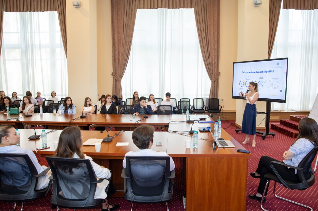 Facilitatoarele SPRINT Dumitrița Certan (Cancelaria de Stat) și Silvia Brașoveanu (Ministerul Educației și Cercetării) au ghidat stagiarii prin etapele elaborării politicilor publice , prezentând instrumente practice folosite în administrația publică: